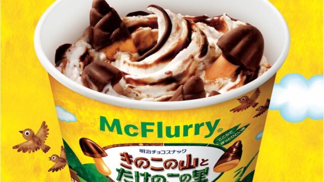 きのこの山とたけのこの里が1つのスイーツに同時に入る初コラボマックフルーリー...
