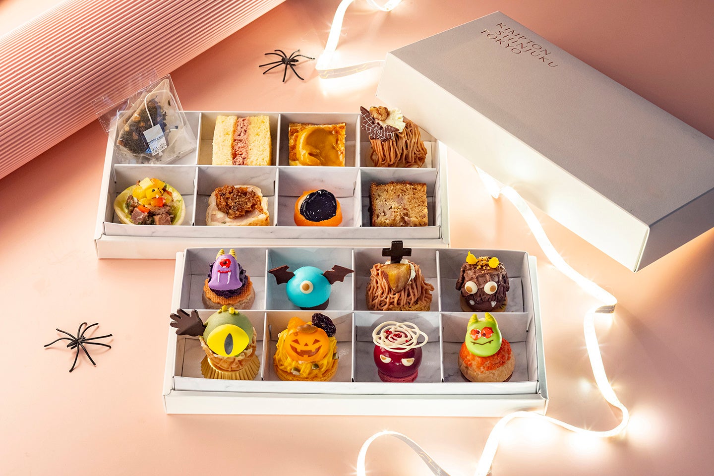 「キンプトン新宿東京」は、自宅でのハロウィンパーティーや手土産、ギフトなど、様々なシーンで楽しめるハロウィン向けのテイクアウトを展開する。ハロウィンスイーツ9種とカナッペ6種、ティーサシェ2つがつき、ボックスを開ければすぐに優雅なティータイムを満喫できる。