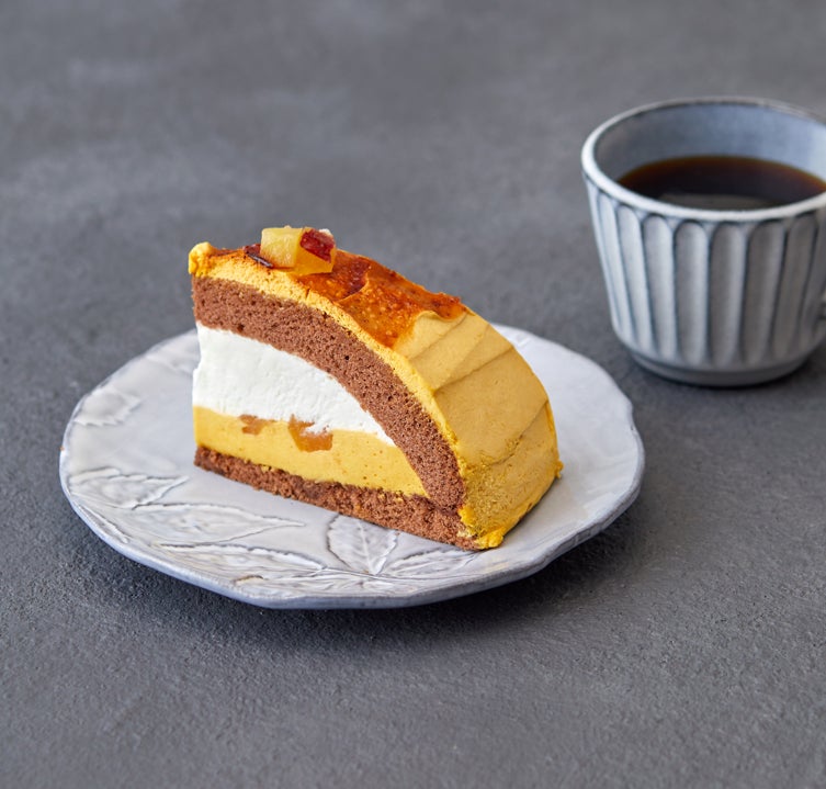 「お芋のズコットケーキ」は、さつまいもベースのムースとクリームを使用し、食感のアクセントとして中にりんごを加えた季節の移り変わりを感じさせるお芋づくしのスイーツ。ドーム型がかわいらしいトレンドのイタリアンスイーツ“ズコットケーキ”に仕上げた。カラメルソースでコクを加えた、奥深い味わいが特長だ。