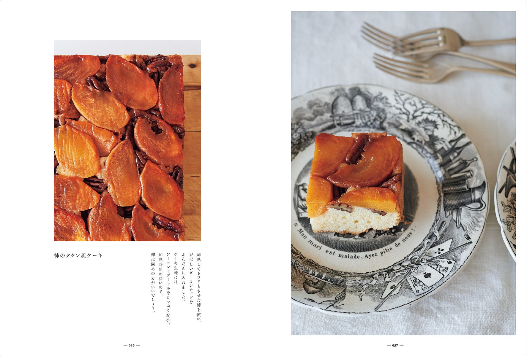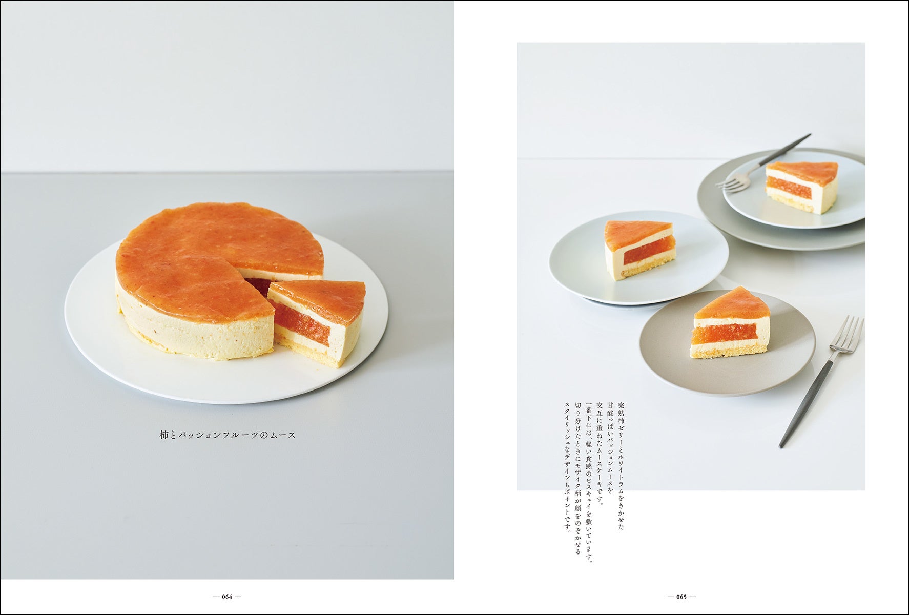 丸ごとコンポートからタルト、パウンドケーキ、ミルフィーユ、トロぺジェンヌ、蒸しケーキ、羊羹など、旬の柿を堪能するレシピ55品を掲載。卵・白砂糖・乳製品なしのナチュラルスイーツと、フランス菓子ベースのエレガントなお菓子の二本立てとなっている。