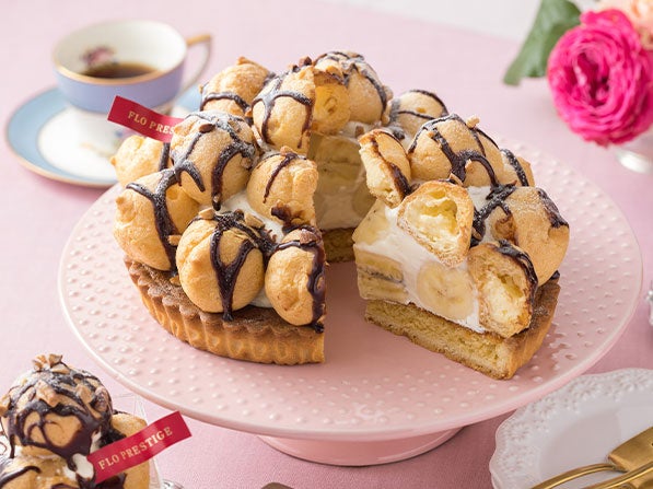 一つ目は、店内のオーブンで焼き上げたダマンドタルトを土台に使用した「プロフィットロールのタルト~バナナ&マスカルポーネ~」。