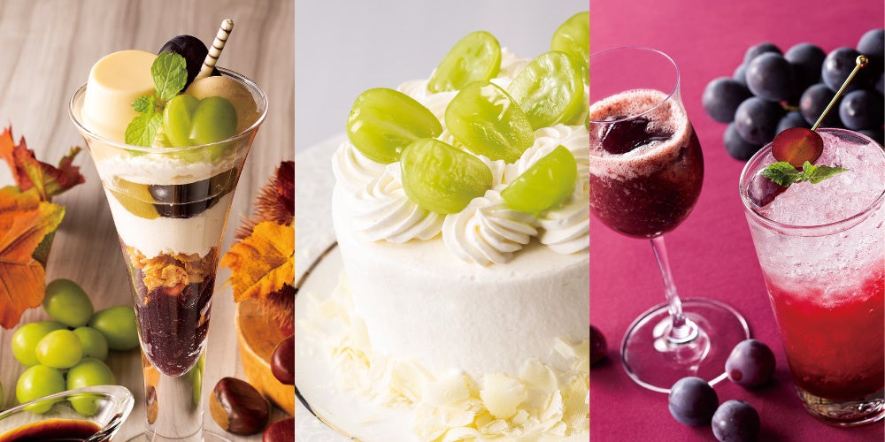 西新宿の「京王プラザホテル」は、秋が旬のフルーツ「ぶどう」のおいしさを存分に活かした2種類のぶどうを楽しむパフェをはじめ、シャインマスカットのショートケーキや、巨峰やシャインマスカットのカクテルを秋限定で用意する。