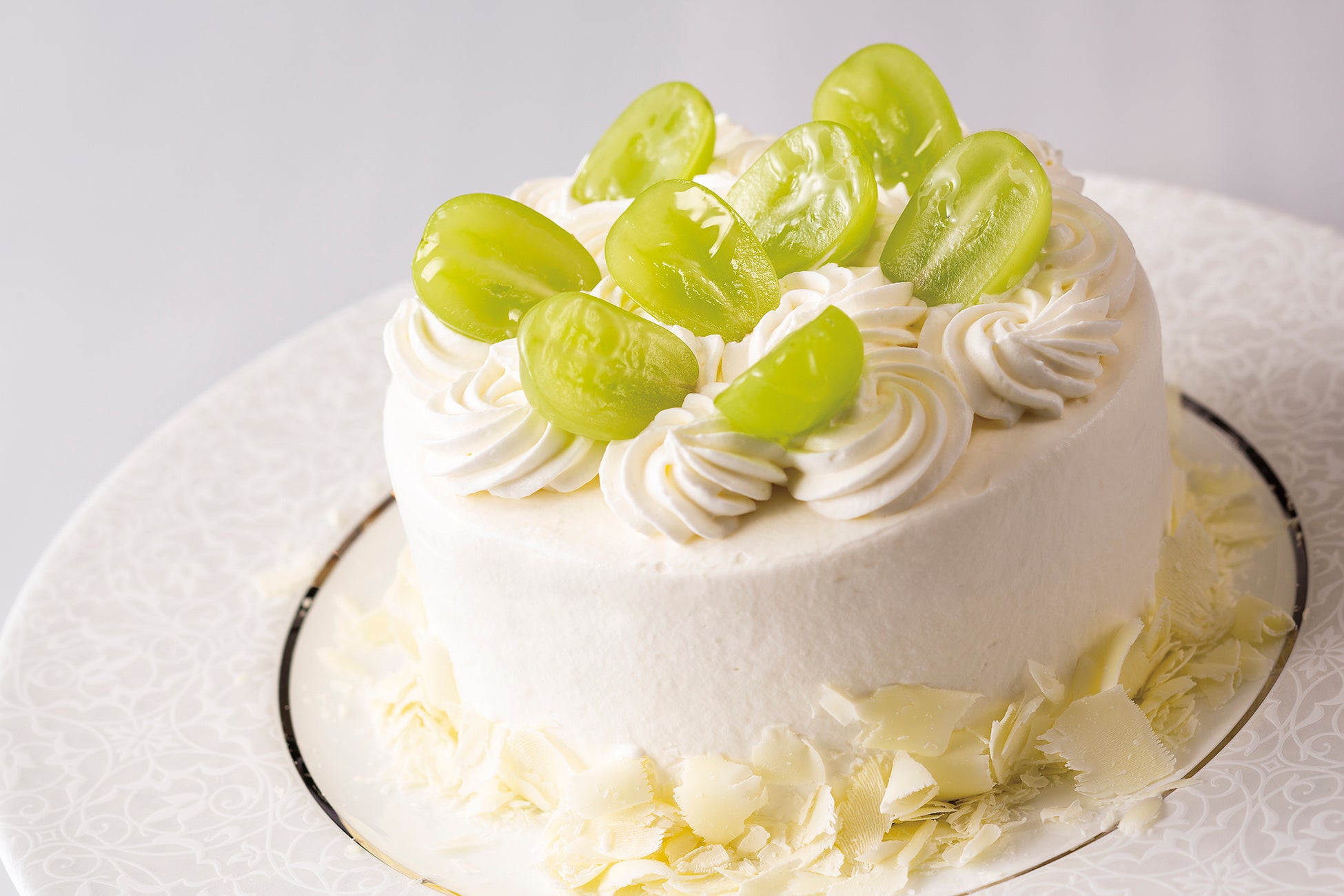 国産のシャインマスカットを贅沢に使用した9月限定のショートケーキだ。ケーキの上と中の層には甘くジューシーなフレッシュのシャインマスカットを敷き詰め、すっきりとした口どけの生クリームとの相性抜群。周りにホワイトチョコレートを飾り、上品な印象に仕上げた。