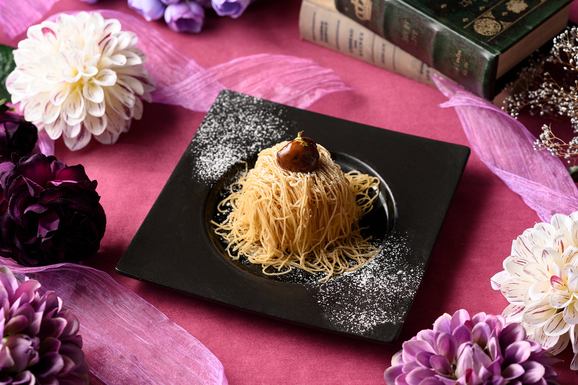 何層にも重ねた和栗ペーストの内側には、自家製のイチジク入りのスポンジ、カスタードクリーム、生クリーム、ナッツのメレンゲを忍ばせた。サックリと焼き上げたメレンゲは、和栗との相性が抜群だ。注文後に一つひとつ丁寧に仕上げる贅沢すぎるデザートだ。