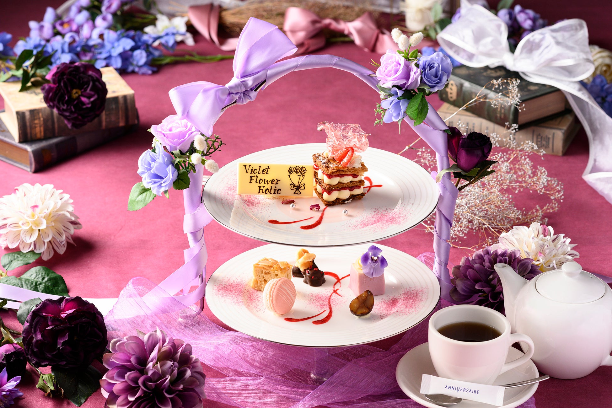 「アニヴェルセルカフェ みなとみらい横浜」にて、期間限定フェア「Violet Flower Holic」(バイオレット フラワー ホリック)を9月16日から開催。バイオレットをコンセプトカラーとしたエレガントで華やかなデザート3種、ドリンク2種、アフタヌーンティープラン2種を用意する。