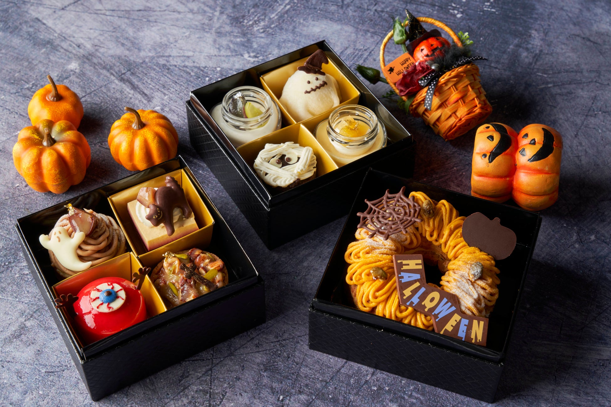 東京・渋谷区「渋谷エクセルホテル東急」は9月17日、ラウンジ「エスタシオン カフェ」にて、ハロウィンスイーツ9種を盛り込んだ重箱「SWEETS BOX~Halloween2022~」(1セット6,000円)の予約受付を開始した。