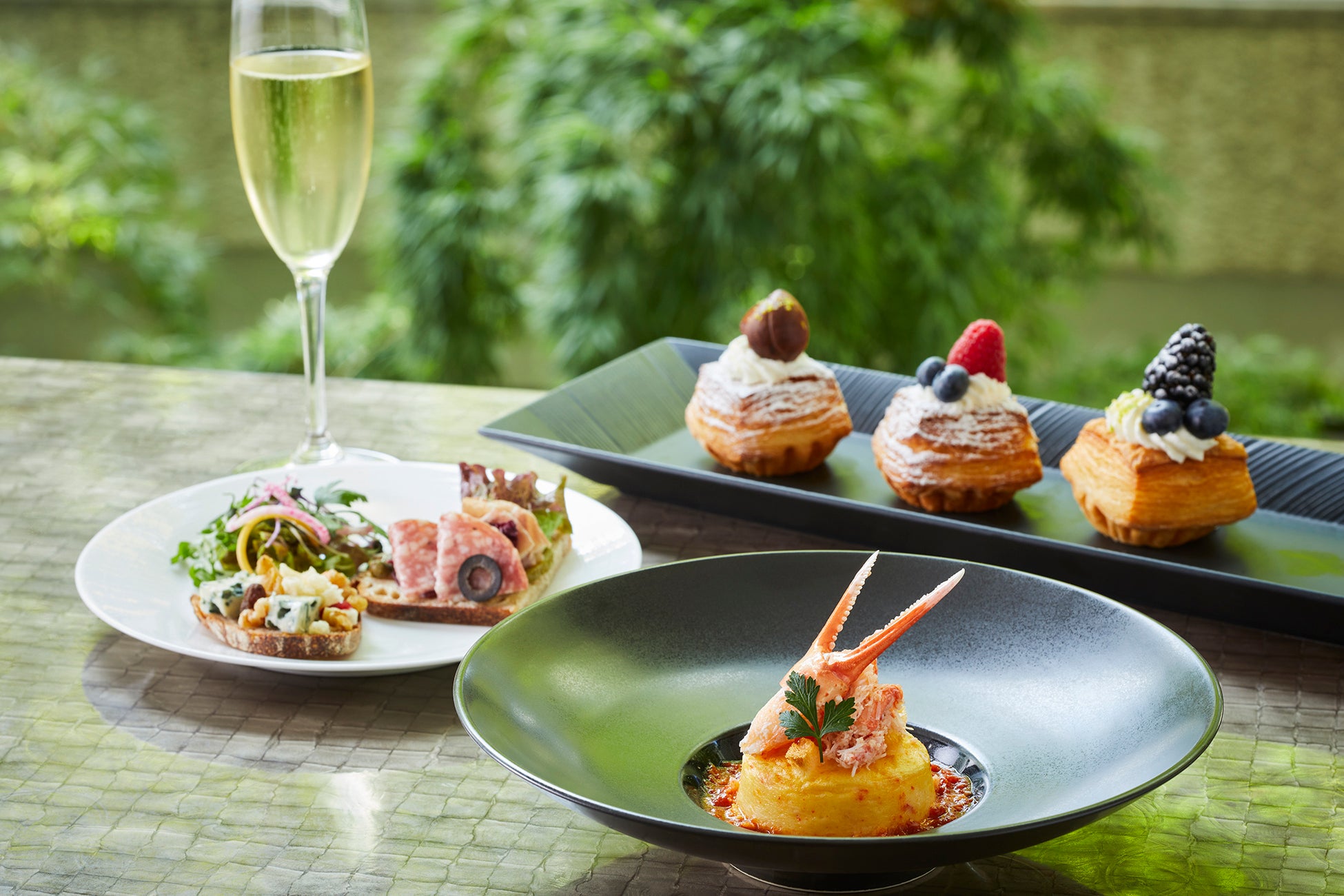 スモークサーモンやチーズなどオードヴルとともに、スパークリングワインを片手に朝からのんびりと優雅な時間をお過ごしいただくのもおすすめ。目の前でシェフができ立て熱々の料理を提供するライブキッチンで、多彩なメニューとライブ感あふれる“極上の朝食”を堪能したい。