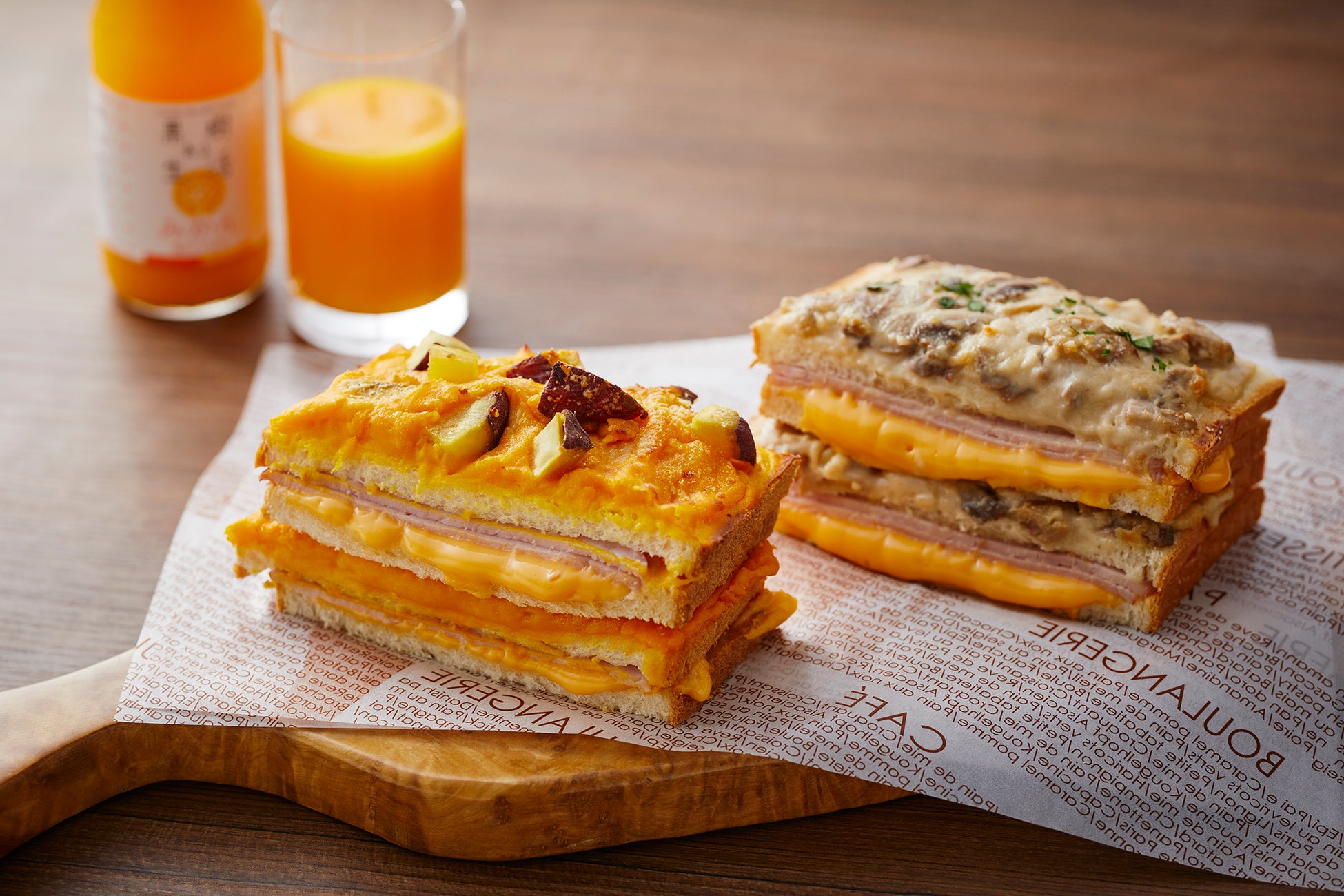 “極上の朝食”のポイントであるライブキッチンで提供するメニューに秋冬の味わいが登場。一番人気の料理長のスペシャルたまご料理には、海老の風味豊かなアメリケーヌソースを添えたオムレツを加えた新たなラインナップに。パンのカリっとした食感に塩気の効いたハムとチーズを挟んだクロックムッシュは、優雅な朝食にぴったりの一品。ホワイトソースをベースにポルチーニのエッセンスが香る「きのこのクロックムッシュ」と、かぼちゃのベシャメルソースに優しい甘みを感じる「かぼちゃとさつま芋のクロックムッシュ」の2種類を用意した。
