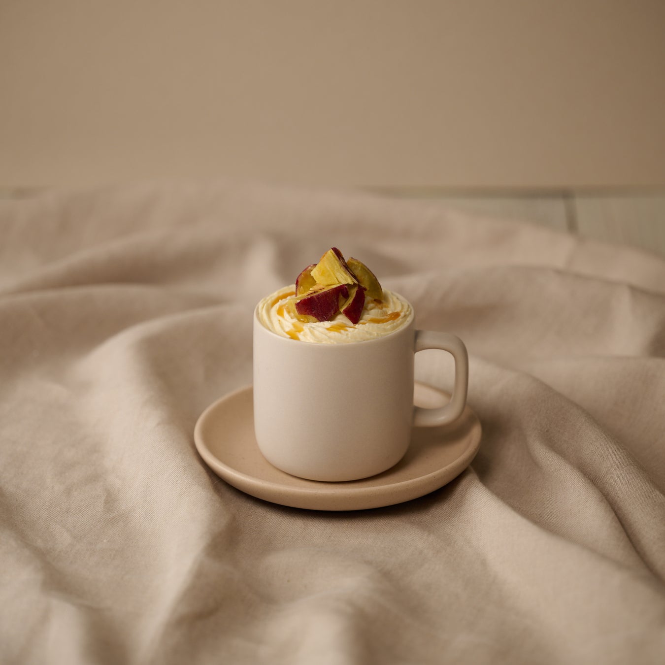 秋の味覚の代表格であるさつまいも。秋の訪れを楽しめる様々な食感を、クレープとドリンクで表現している。