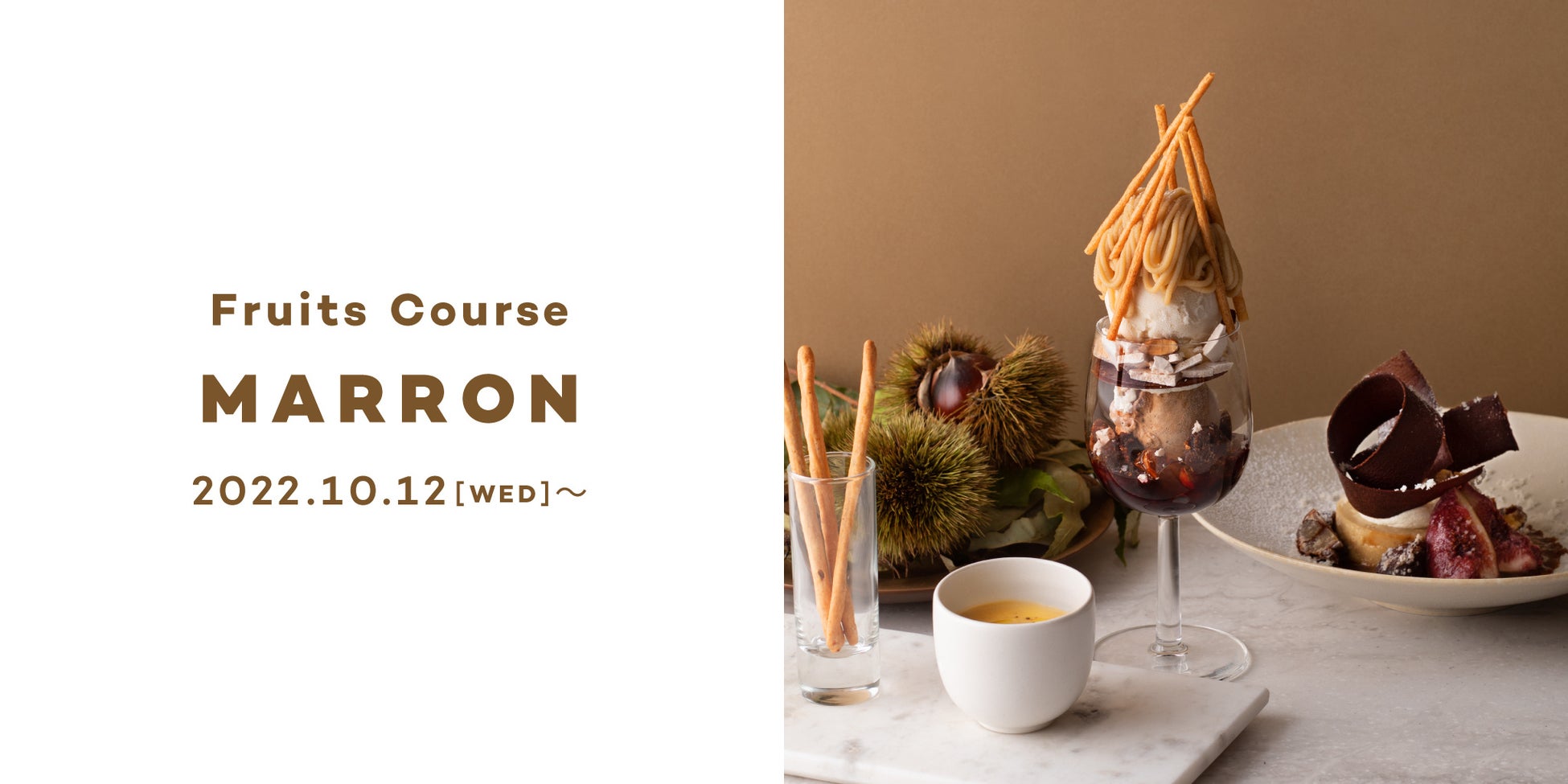 「Beauty Connection Ginza(ビューティーコネクション銀座)」は、同施設内2Fの「フルーツサロン」にて、秋の風物詩、和栗を主役に据えた「和栗のフルコース」を10月12日〜11月28日に期間限定にて提供する。