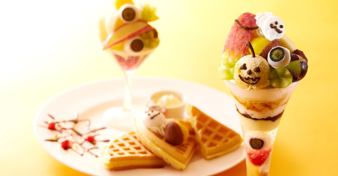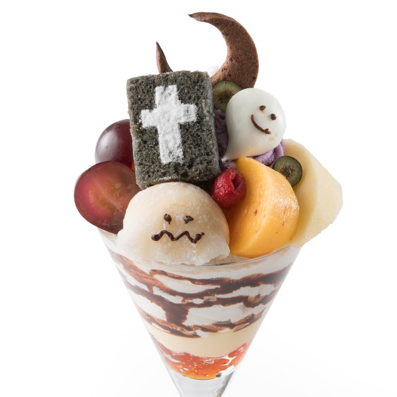 8店舗にて展開するハロウィンメニューは、全店違う仕立てにて提供する。それぞれの店舗ごとにいろいろなおばけが集まり、ハロウィン気分を盛り上げる。秋のフルーツを中心に、1つのデザートで色々なフルーツが楽しめるのも魅力の一つだ。