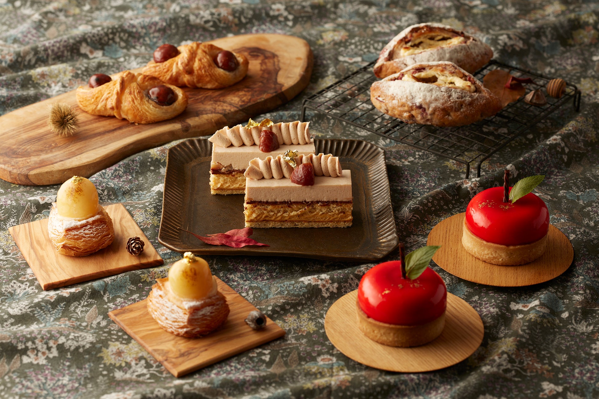 ペストリー商品は「アルディジョワ」「ポンムポンム」、ベーカリー商品は「ポワールデニッシュ」「マロンデニッシュ」「クランベリーとクリームチーズ」が登場。「アルディジョワ」は、キャラメルムースやマロンムース、チョコレートガナッシュなど様々な食材のハーモニーが絶妙な大人な味わいに仕上げている。