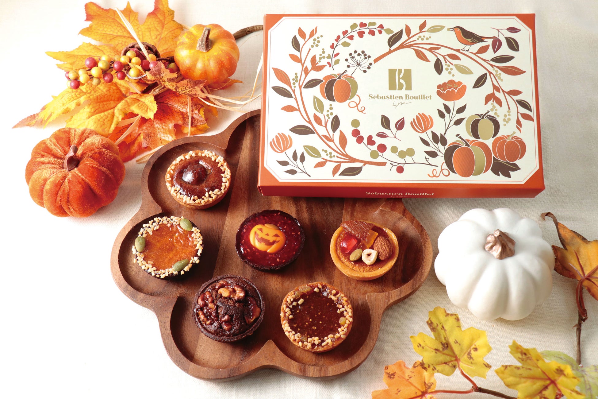 かぼちゃやマロン、ごろっとナッツをあしらった秋らしい季節限定の詰め合わせ「タルトレット ロートンヌ」。マドレーヌショコラの上にフランボワーズのコンフィチュールやかぼちゃのショコラでデコレーションした”ショコラフランボワーズ”、カフェ風味のマドレーヌにキャラメルとくるみをあしらった”カフェノワ”、カボチャのマドレーヌにアーモンドとカボチャの種をトッピングした”ポティロン”は、この詰め合わせでしか味わえない特別なフレーバーだ。