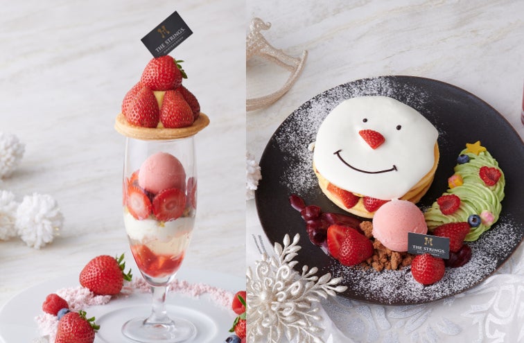 東京都港区の「ザ ストリングス 表参道」は11月1日~12月25日、1階「Cafe & Dining ZelkovA(カフェ&ダイニング ゼルコヴァ)」にて、冬限定スイーツ「ストロベリーパイ パルフェ」および「スノーマン パンケーキ」を提供する。