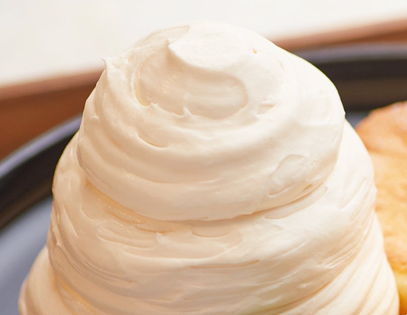 「泡ミルクセーキパンケーキ」は、遺伝子組み換えでない飼料で育てた親鶏からうまれたこだわりのたまごを使用し甘さや口当たり、口溶けなど、細部にこだわって作り上げた。