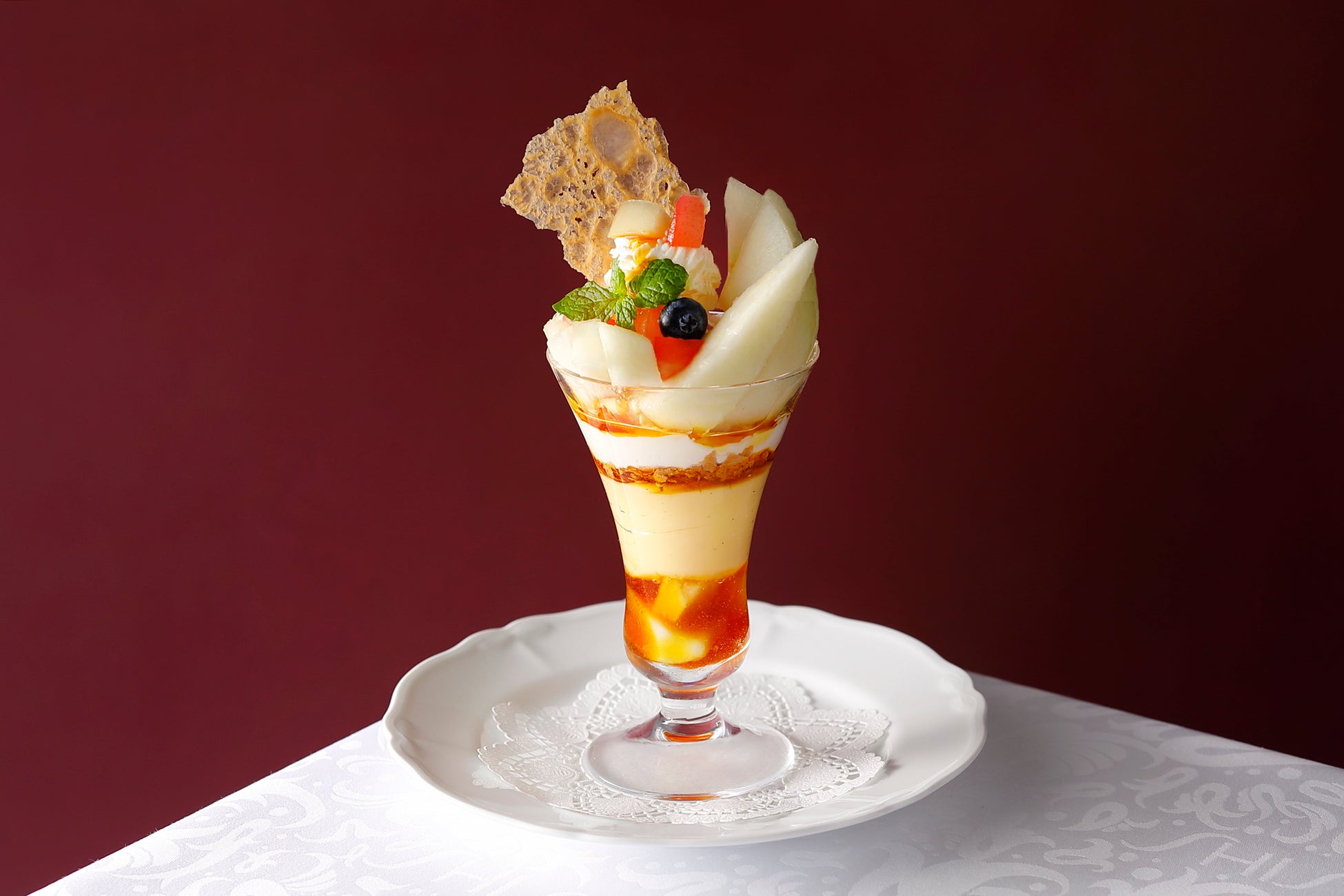 「資生堂パーラー 銀座本店サロン・ド・カフェ」は11月1日より、山形県東根市産・岡田果樹園のラ・フランスを使ったメープルのパフェを販売する。
