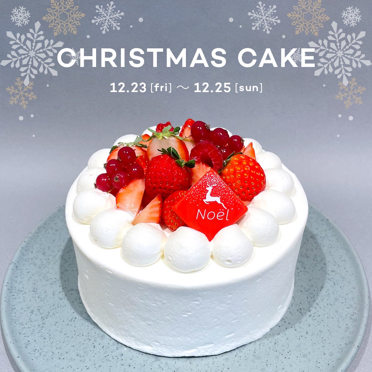 店舗受け取り限定の「いちごのホールケーキ」は税込み4860円で提供。予約はオンラインストアにて12月18日まで受け付ける。受け取りは12月23日〜25日の3日間。