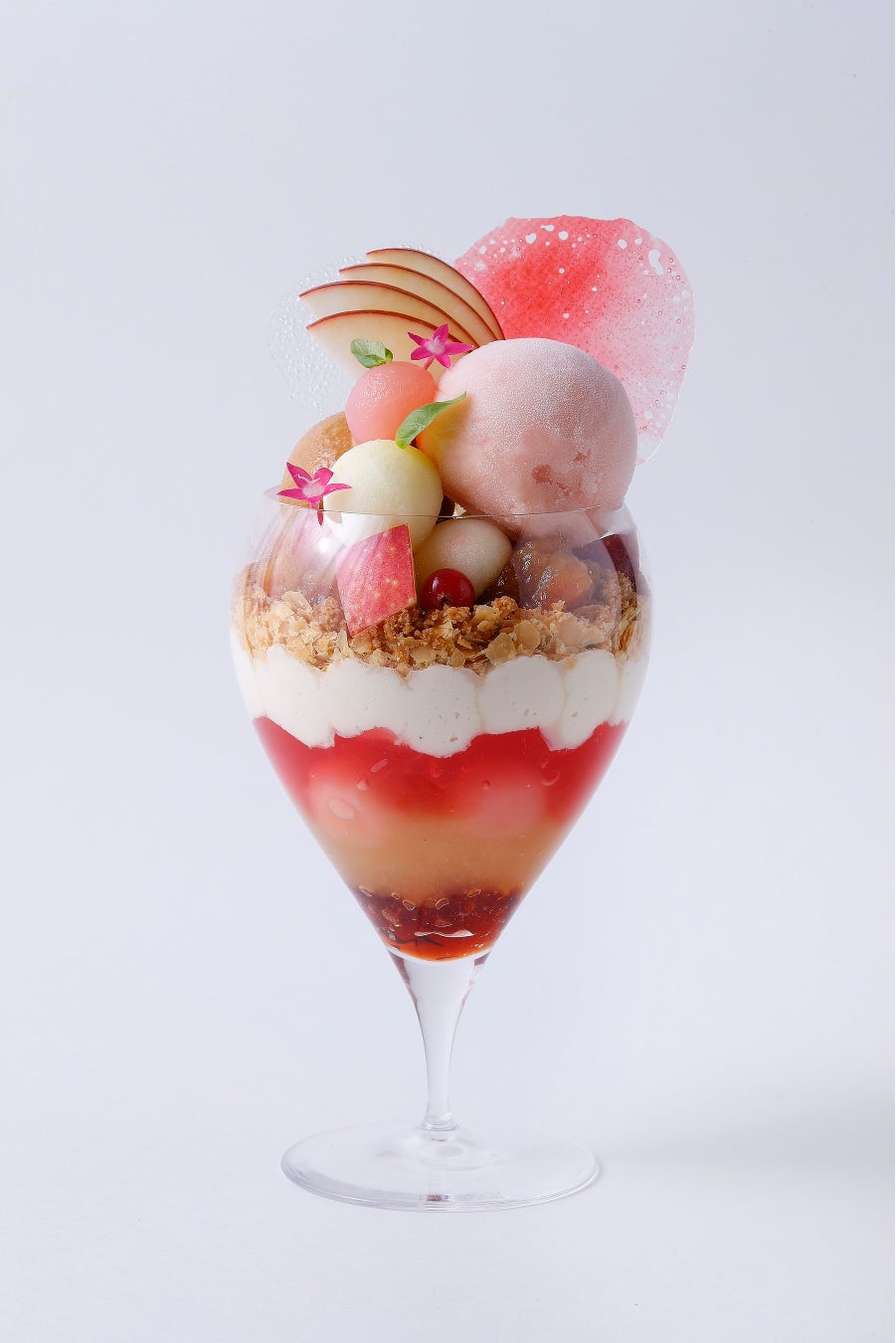 「エンポリオ アルマーニ カフェ 表参道」「エンポリオ アルマーニ カフェ 心斎橋パルコ」に11月、季節ごとに食材が変わる月替わりの「季節のパフェ」として、りんごが主役のパフェ「りんごとカラメル カフェビアンコのパフェ」が登場する。