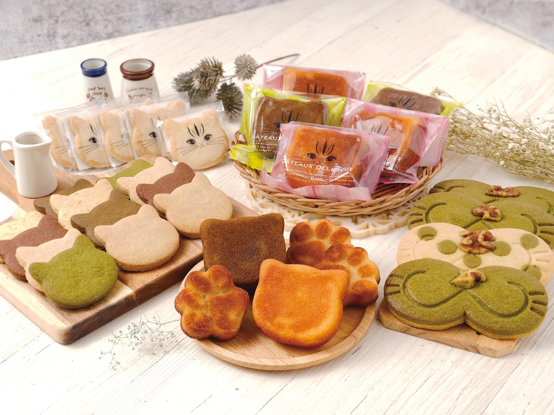 創業20年、地元に愛されるケーキ屋「すずとら」。今回の店舗では、定番の7種類と月替わりを1種類、さらに季節限定なども取り入れ、毎日10種類以上のチーズケーキを揃える。また、お土産に人気の猫をモチーフとした焼き菓子も用意する。
