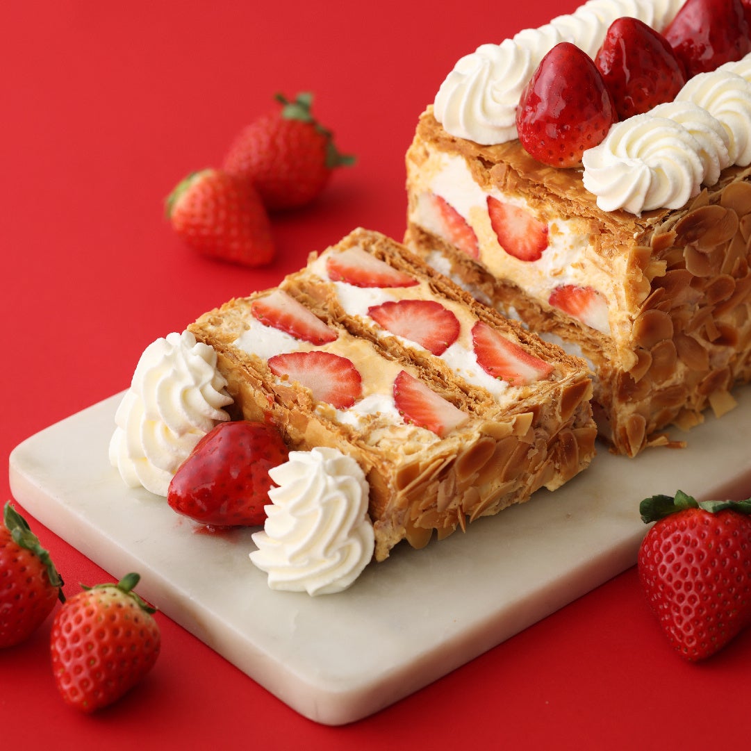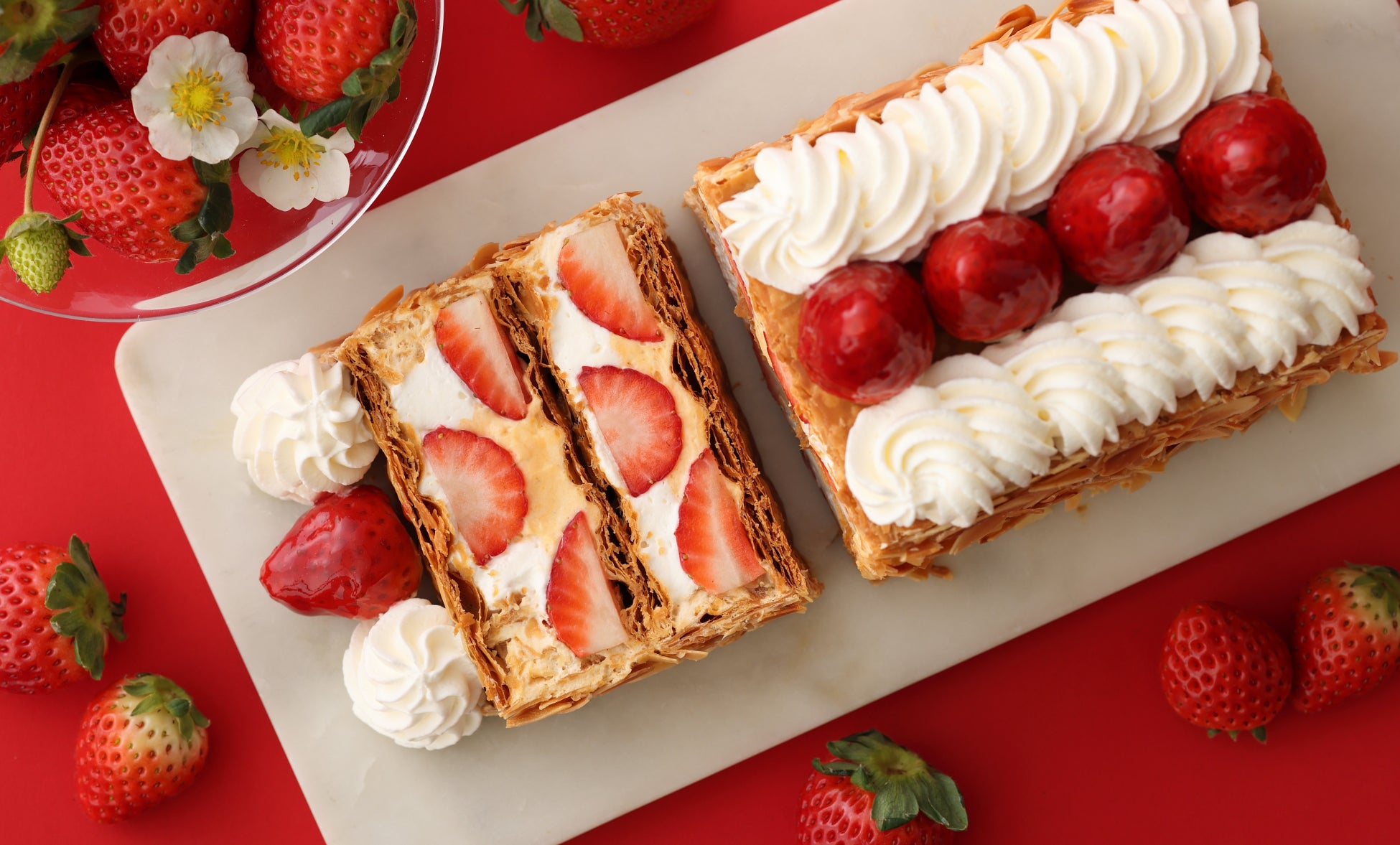 サクサクのパイ生地とクリームを何層にも重ねた仏菓子「苺のミルフィーユ」は、日本では「ナポレオンパイ」と称され、多くの方から親しまれている。