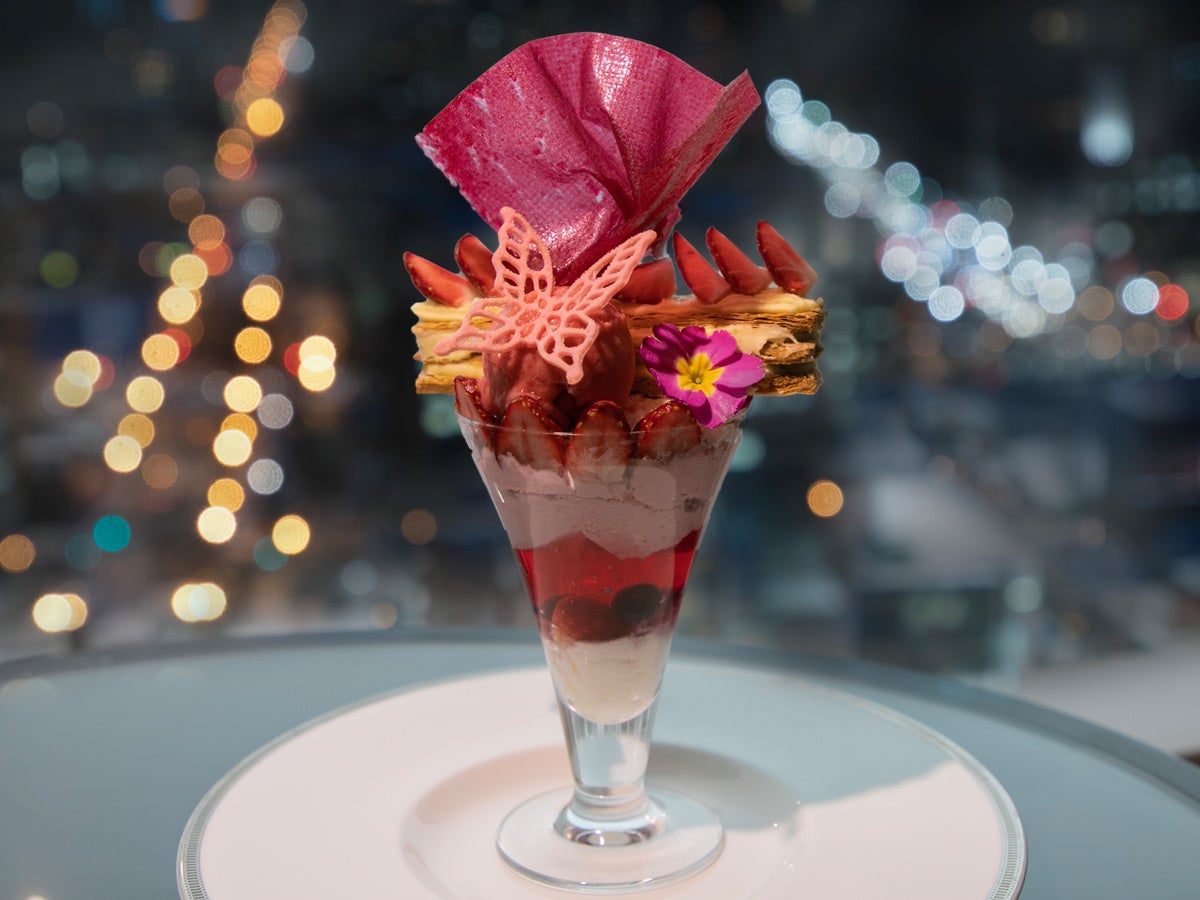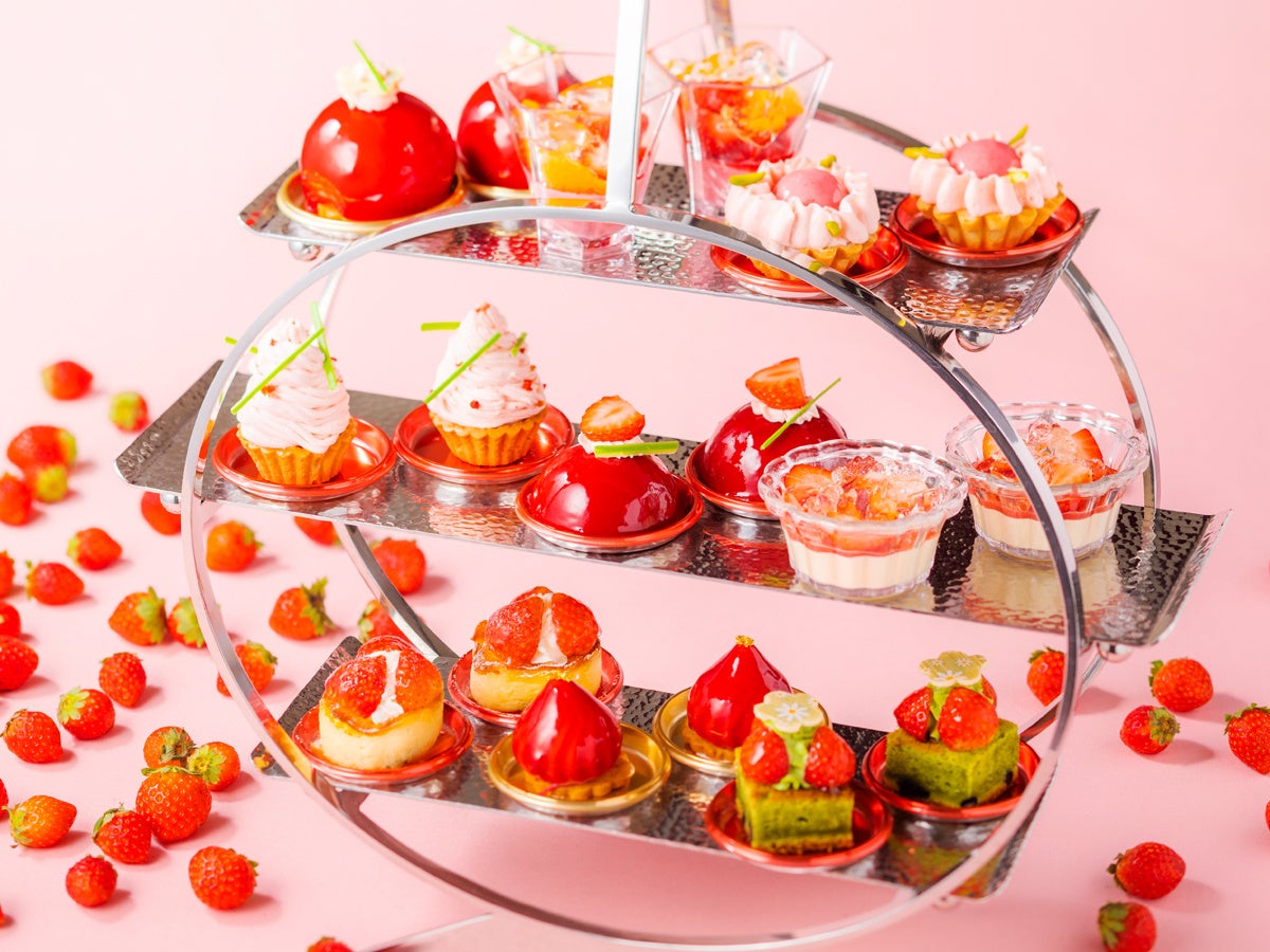 北海道札幌市の「札幌プリンスホテル」は12月31日〜2023年3月31日より、ホテル最上階「スカイラウンジ トップ オブ プリンス」にて、苺の「天空のアフタヌーンプレート」と「シメパフェ」を展開する。