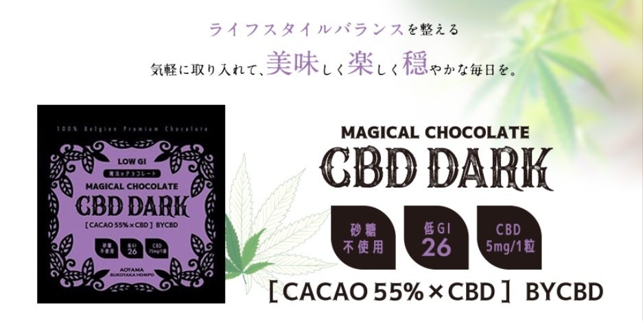 第1弾はリラックス効果が期待できるCBDが入った「魔法のチョコレート CBD DARK」。有機認定農園で栽培されたカカオを100%使用した砂糖不使用・低GI・サスティナブルチョコレートに、ナチュラル&オーガニックなCBDを配合した。価格は税別1,200円。