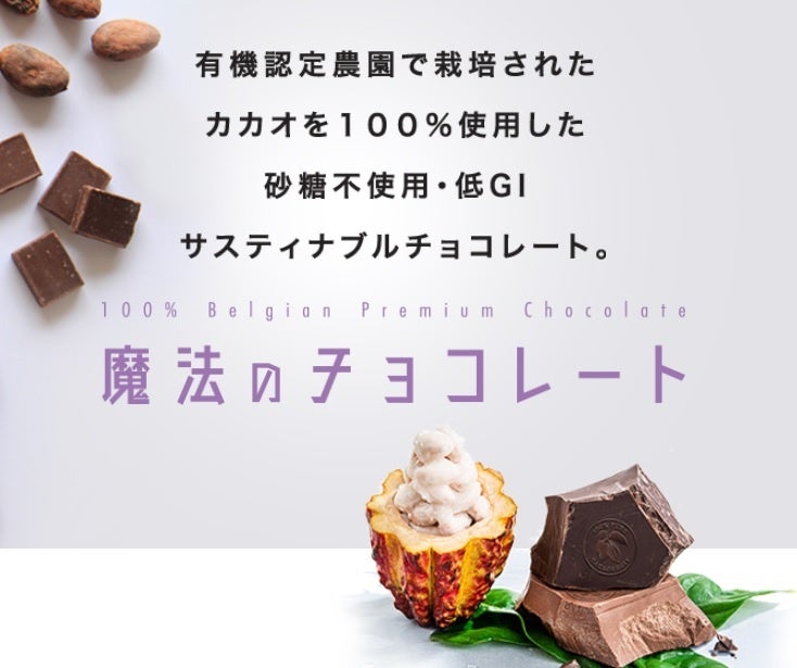 東京都港区の青山すこやか本舗は12月19日より、有機認定農園で栽培されたカカオを100%使用・砂糖不使用・低GI サスティナブルチョコレートをベースに、機能性を追求した、ライフスタイルバランスを整えるチョコレート「魔法のチョコレート」シリーズが発売中だ。