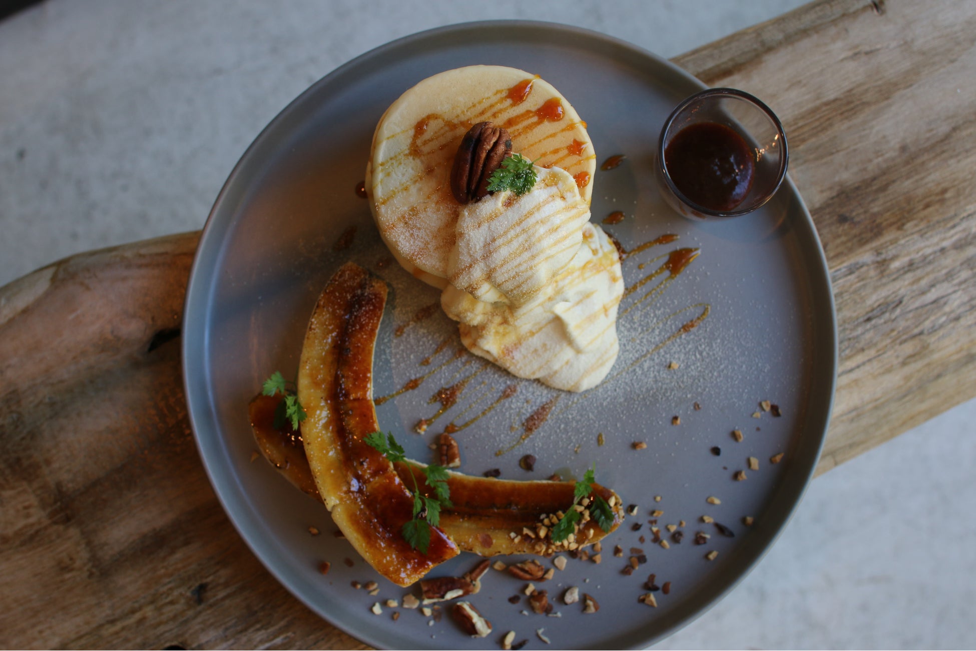 現行メニューに新たに4品のレギュラーメニューが並ぶ。ヘルシーかつほどよい甘さが楽しめる体にも環境にも優しいスイーツ「キャラメルバナナのヴィーガンパンケーキ」のほか、クスクスをベースに5種の自家製デリを添え、ボリューミーでヘルシーな「TREEサラダボウル」、「オリジナルハーブティー “チル”」など新メニューが展開される。
