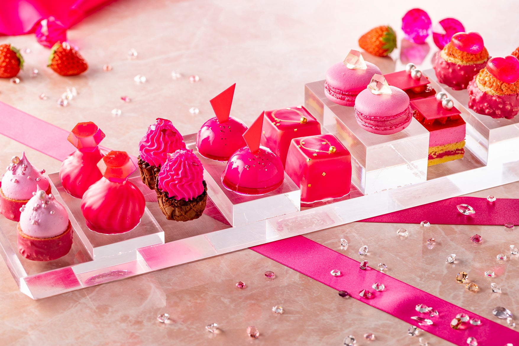 ディストリクト ブラッスリー・バー・ラウンジより贈る2023年最初のアフタヌーンティーは「Think Pink!」がテーマのアフタヌーンティー。旬のいちごとチョコレートを用いて、ジュエリーのモチーフを施したオールピンクのフォトジェニックなスイーツを全9種で揃える。