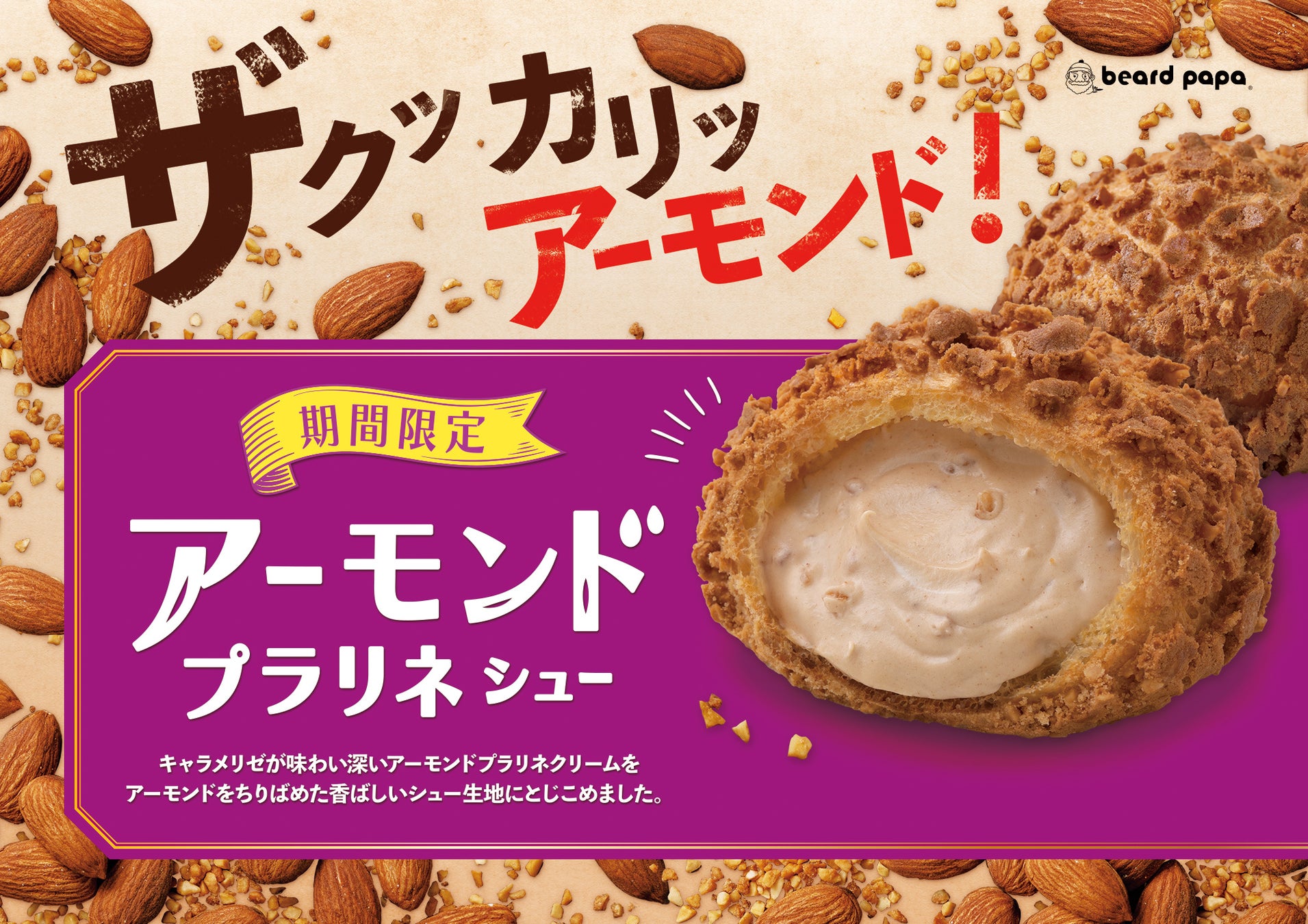 1月6日からは、新作の「アーモンドプラリネシュー」を展開。アーモンドを散りばめたクッキーシュー生地に、キャラメリゼがアーモンドプラリネクリームを詰め込んだアーモンドづくしのスイーツだ。1月31日まで、税込み250円で販売する。