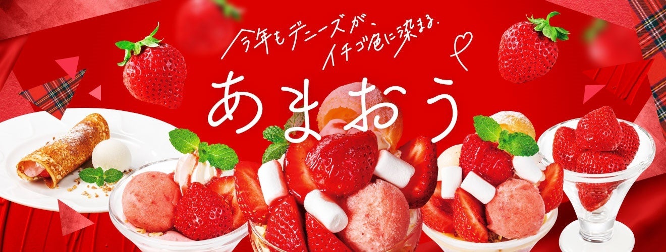 「デニーズ」は1月10日から福岡県産「あまおう」を用いた全5種のデザートの提供をスタートする。