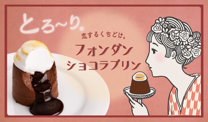 「レトロな喫茶店で提供する、恋するほど美味しいプリン」をコンセプトにした「プリンに恋して」は1月24日より、とろけるチョコの「フォンダンショコラプリン」をEsola池袋店にて提供スタートする。