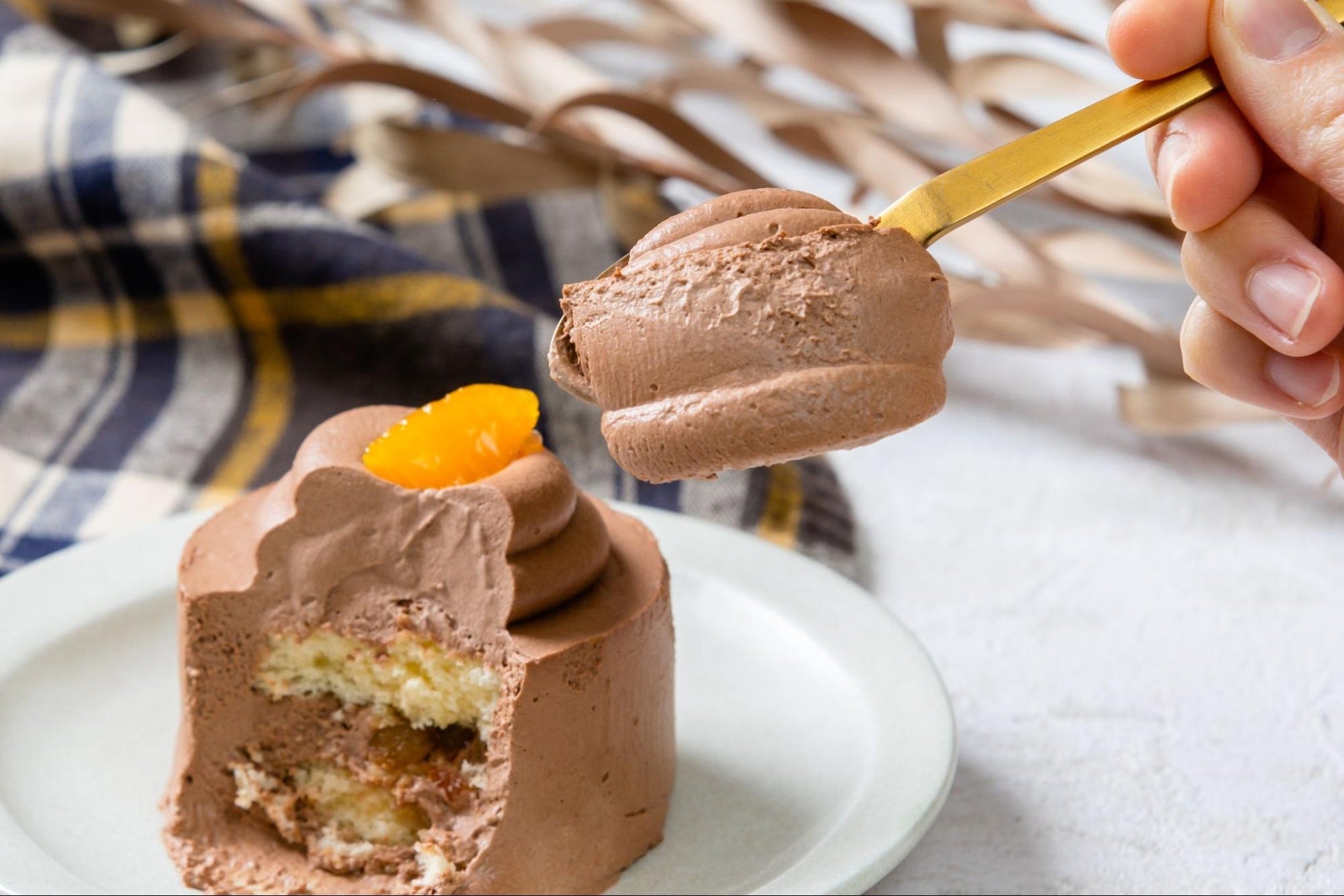 「オレンジのチョコレート」は、カカオ73%と99%の高カカオなベルギー産チョコレートをたっぷり配合したチョコクリームを採用した今季の新作。ガナッシュのようになめらかな口溶けが特徴だ。トップにはチョコレートと好相性のネーブルオレンジ、サンドにはほろ苦さもあるオレンジピールを用いた。さらにチョコクリームには香りづけにオレンジリキュールのコアントローをアクセントとして忍ばせた。