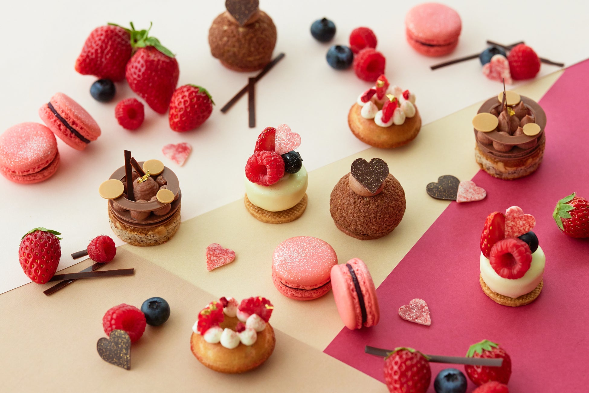 「Cherry nuts(チェリーナッツ)」は、マカダミア&ヘーゼルナッツのダックワーズ、グリオットチェリー風味のチョコレートガナッシュとチョコレートシャンティ―クリームを遊び心のあるチョコレートで飾ったもの。「Fruity Ivory(フルーティーアイボリー)」は、ライム風味のホワイトチョコレートムースといちごのコンポート、ショートブレッドにフレッシュベリーのブーケを添えている。