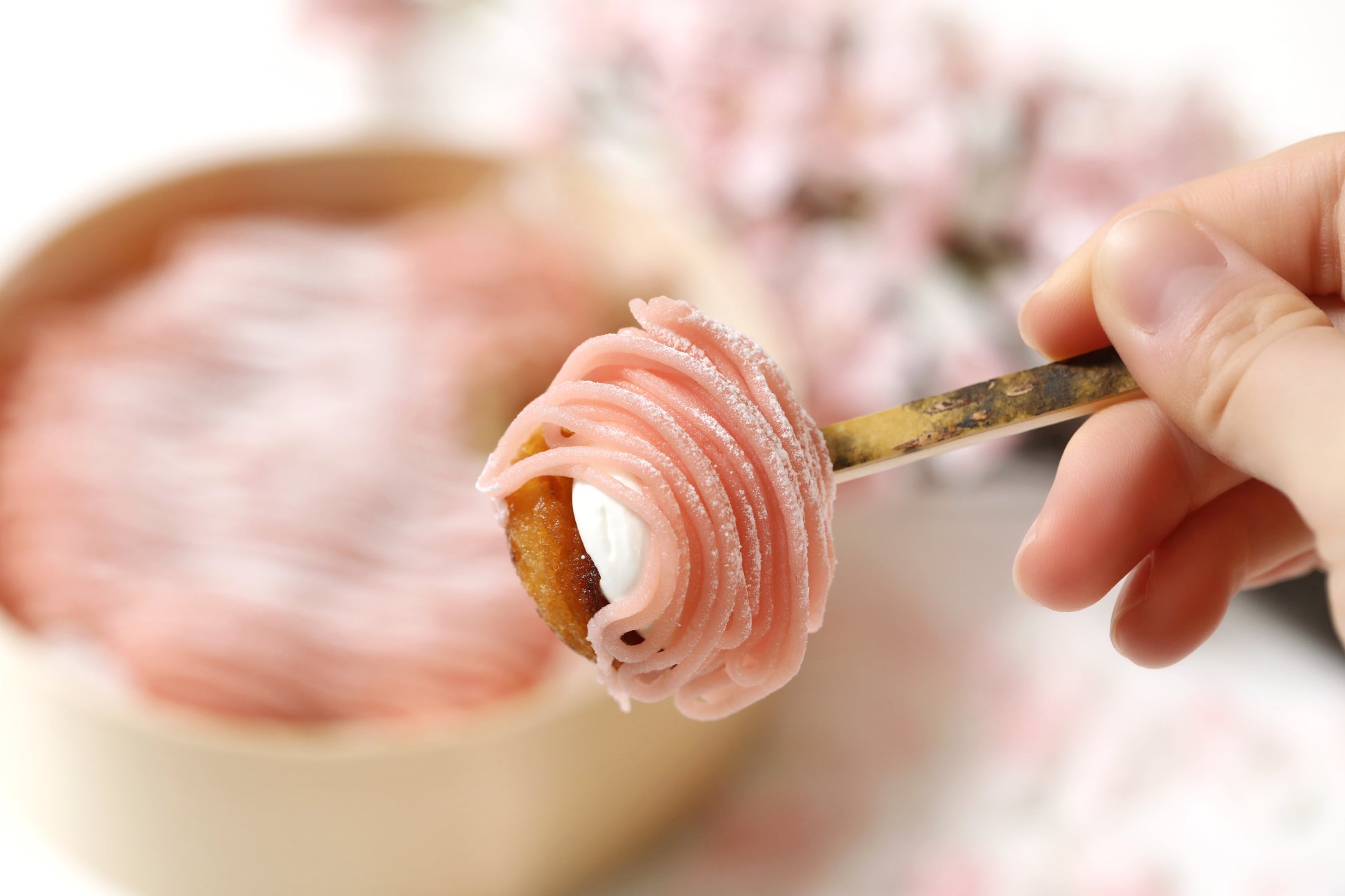 関東・東海を中心に展開するスイーツショップ「PÂTISSERIE PINÈDE(パティスリーピネード)」は2月18日より、「さくらのプチモンブラン」および「さくらのプチモンブラン ~ねこVer.~」を提供する。