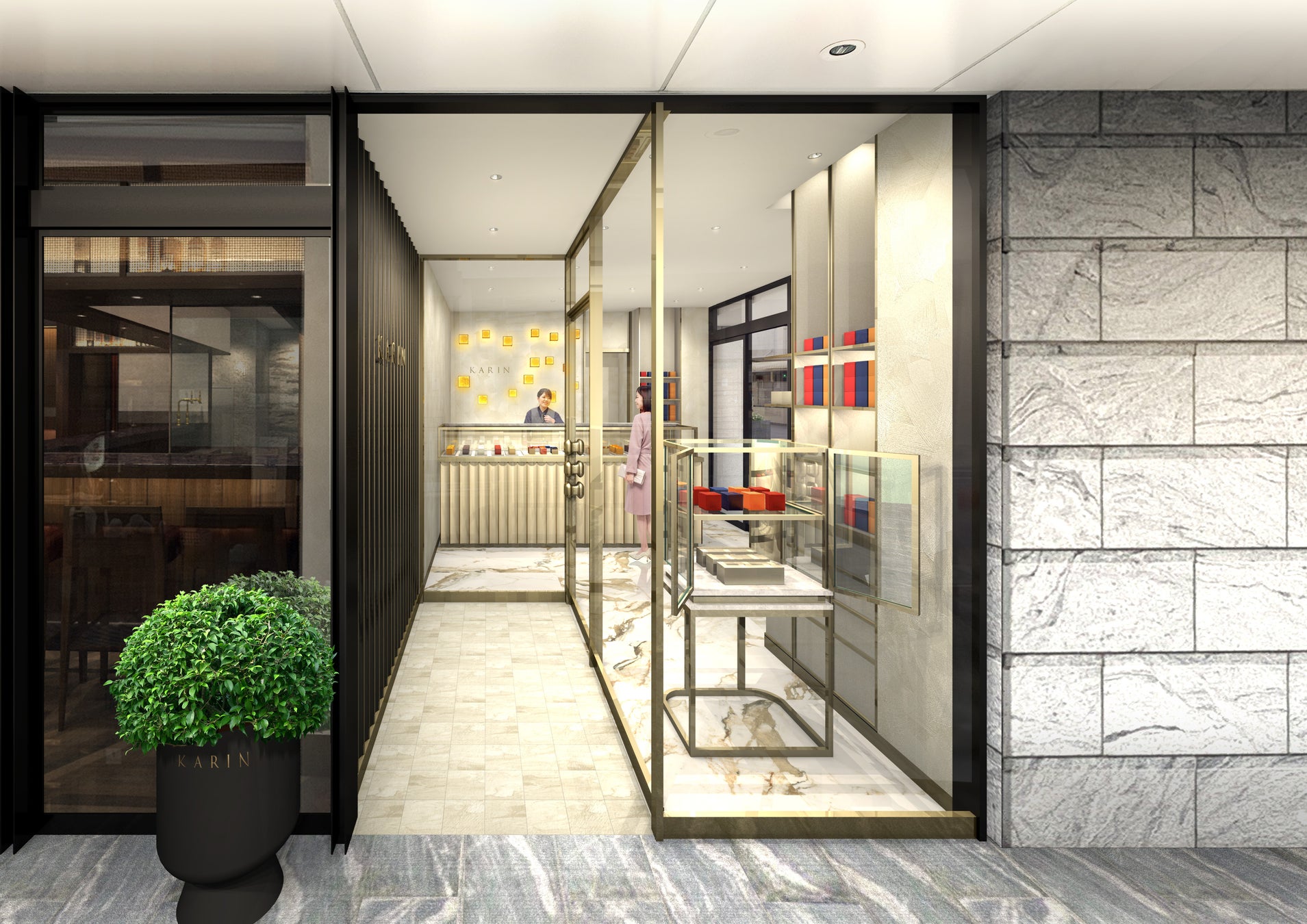 ライズホテル大阪北新地1階、フレンチレストラン「アントレーズ」の隣にオープンするKARINは、系列ホテル「ホテルプラザ神戸」のオリジナルブランド。
