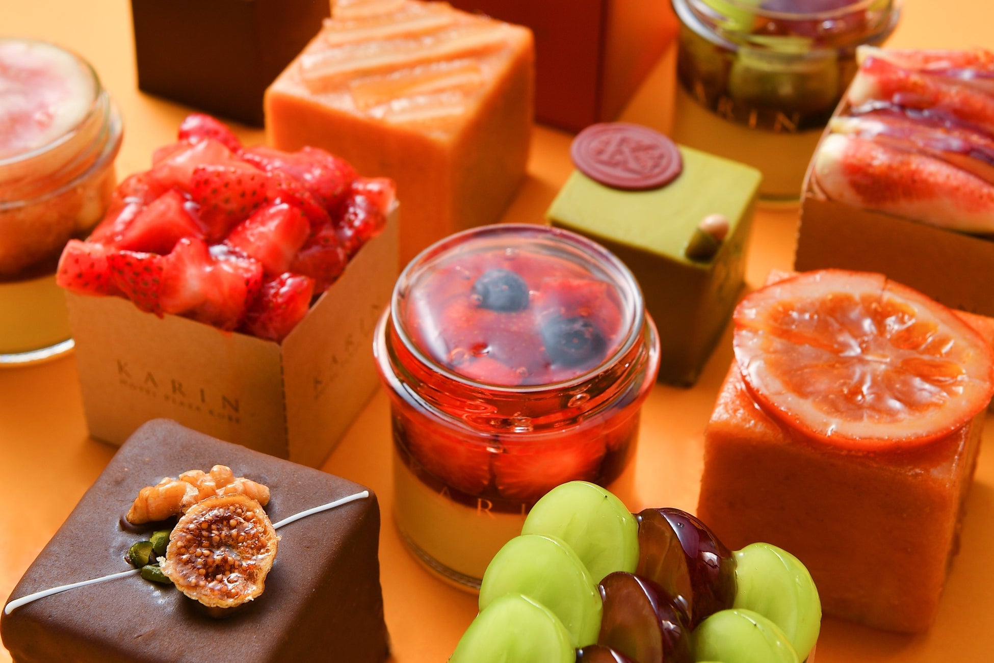箱を開ければ果実のきらめきがまるで宝石のような美しさのシフォンケーキ「ジュエル シフォン」、シャープな見た目から想像できない、しっとり滑らか極上の舌触り「モデルヌ キュブ」、フルーツの甘酸っぱい香りを詰め込んだパウンドケーキ「カトルカール キュブ」。
