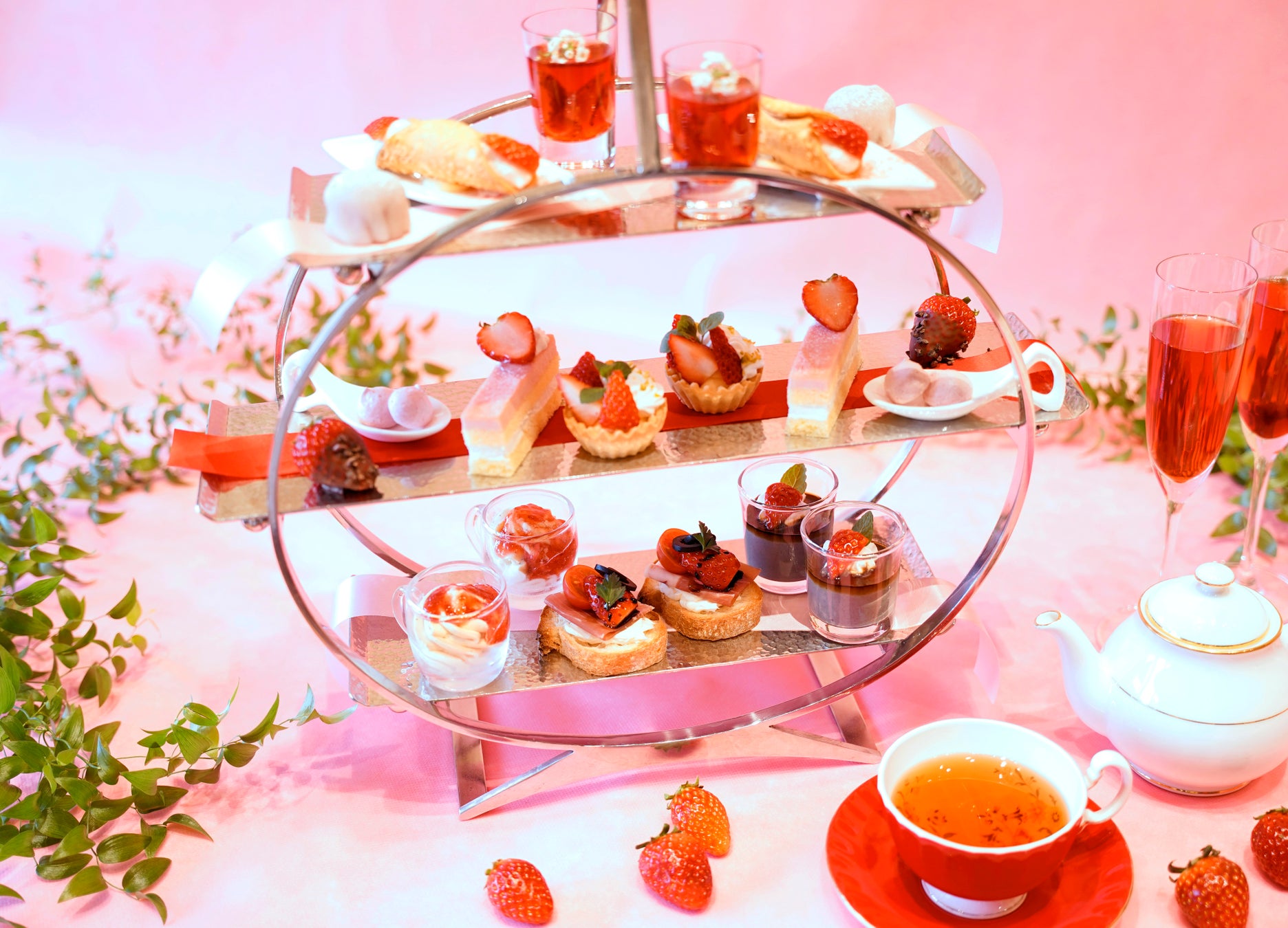 東京都指定有形文化財にも指定されている明治記念館本館のラウンジ「kinkei(キンケイ)」では5月7日まで、旬のイチゴを用いた「ストロベリーフェア」を開催している。
