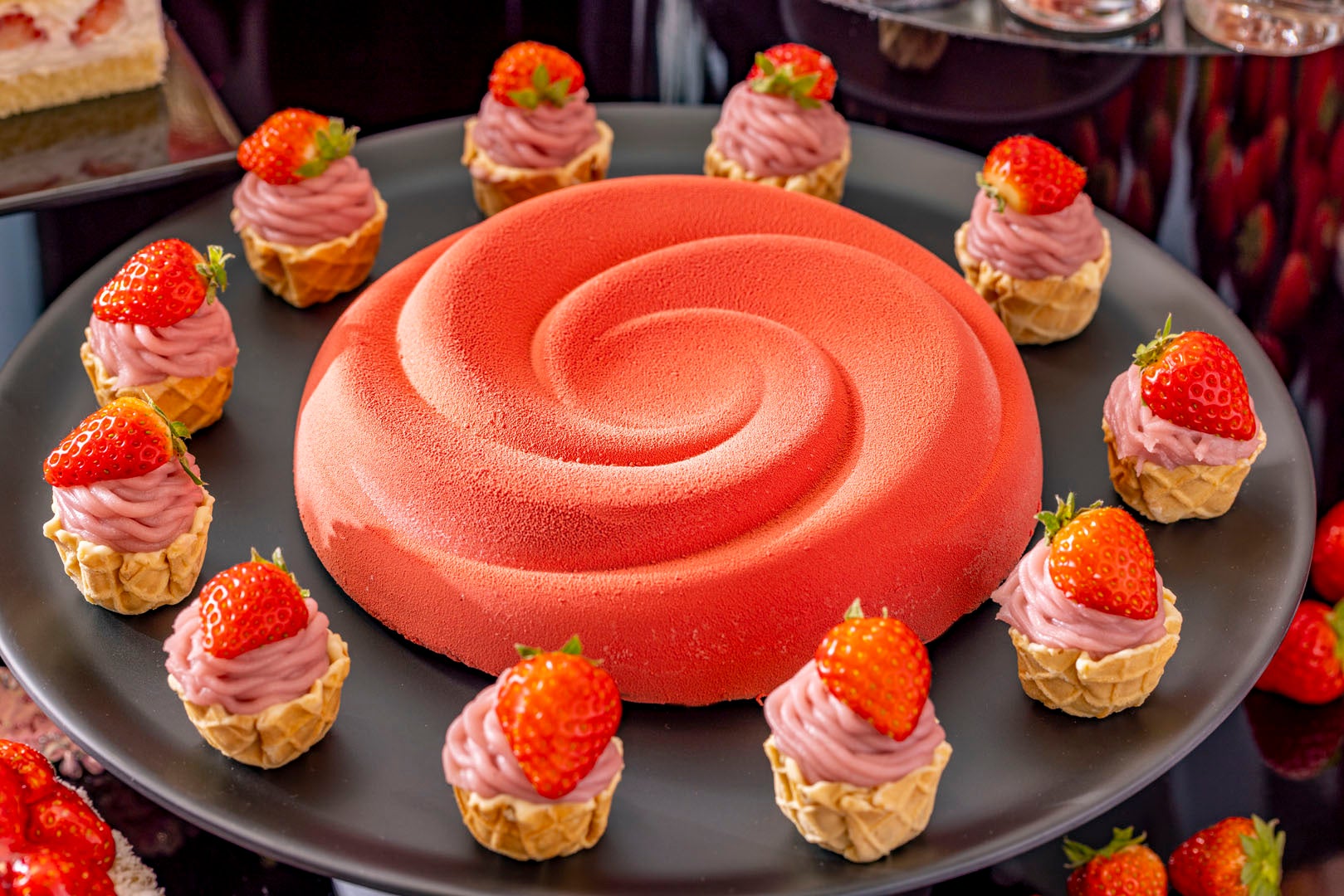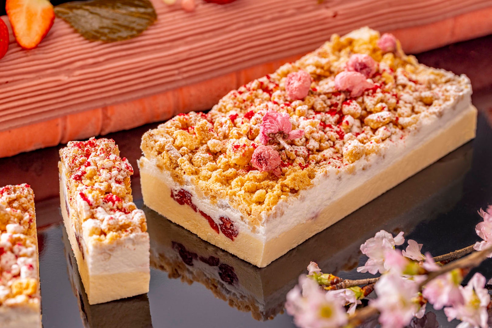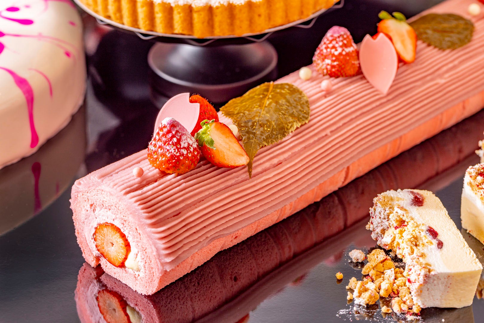 イチゴスイーツの王道「ストロベリーショートケーキ」や「ストロベリータルト」、そして桜を用いた春スイーツが新たに仲間入り。米粉のストロベリーロールケーキを桜モンブランクリームと桜葉で上品に仕上げた「桜ストロベリーロールケーキ」、クリーミーな杏仁をベースに、フレッシュイチゴや桜風味のゼリーで仕上げた「桜ゼリー杏仁」、和の趣も演出した「桜パフェステーション」は、抹茶ゼリー、紅白玉やベリークランチなどのトッピングを組み合わせて、自分好みのオリジナルパフェに仕上げられる。