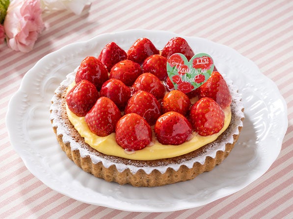 「母の日 タルトフレーズ」は、紅茶の茶葉入りのシュクレにアーモンドクリームを流して焼き上げ、その上にカスタードクリームとイチゴを丸ごとトッピングしている。