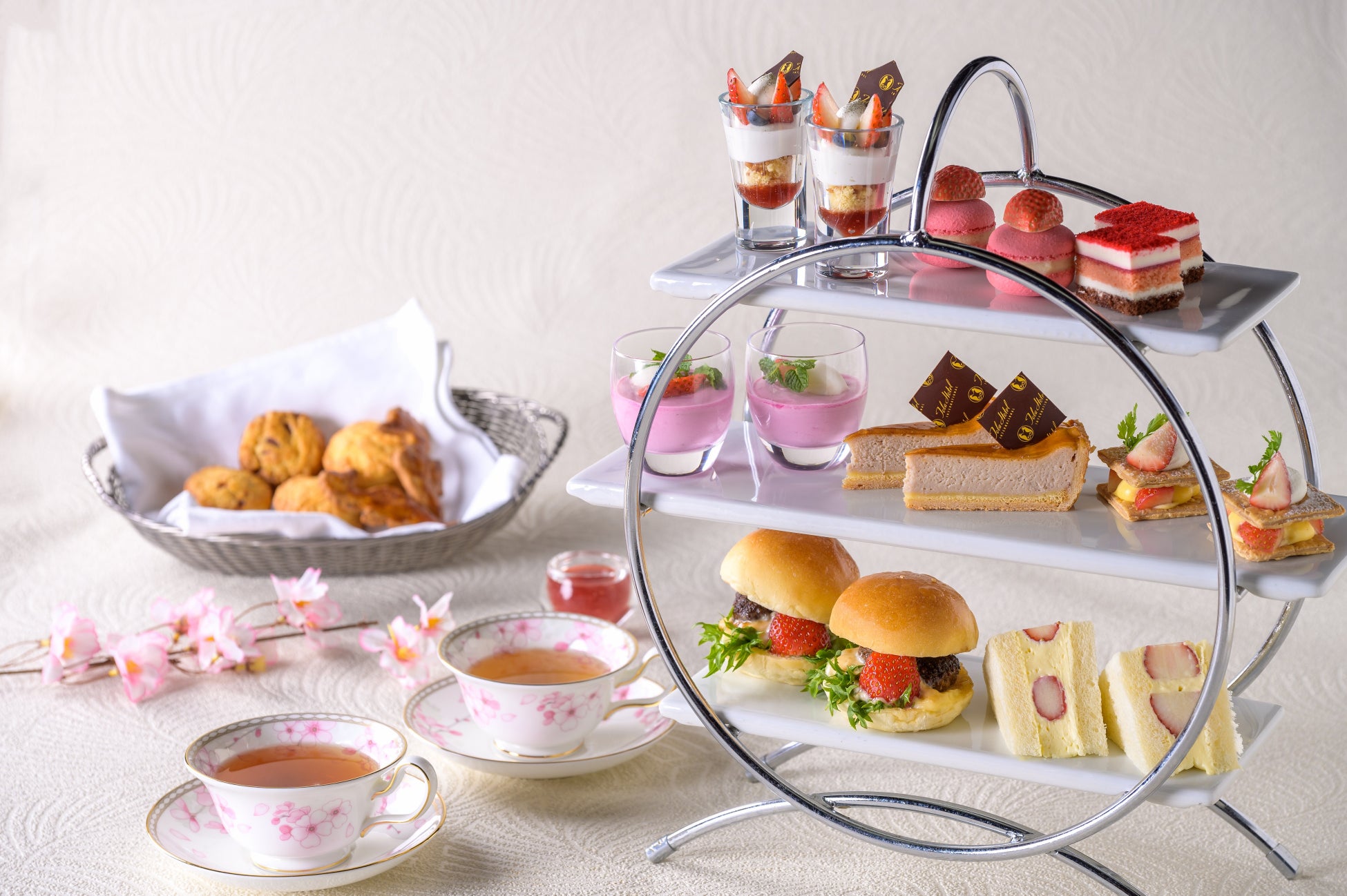 月ごとにテーマを変えて提供をしている「アフタヌーンティー」は、ライブラリー&バー、またはメインダイニングシーホースで提供。三重県産美熊野牛とイチゴをサンドしたミニバーガーやイチゴのフルーツサンドなどのセイボリーをはじめ、マンスリーチーズケーキである「苺のチーズケーキ」などのスイーツ、さらにはアフタヌーンティーには欠かせないイチゴのスコーンも揃える。価格は1名税込み3,300円。他にも、テイクアウト向けのアフタヌーンティーセットも販売する。