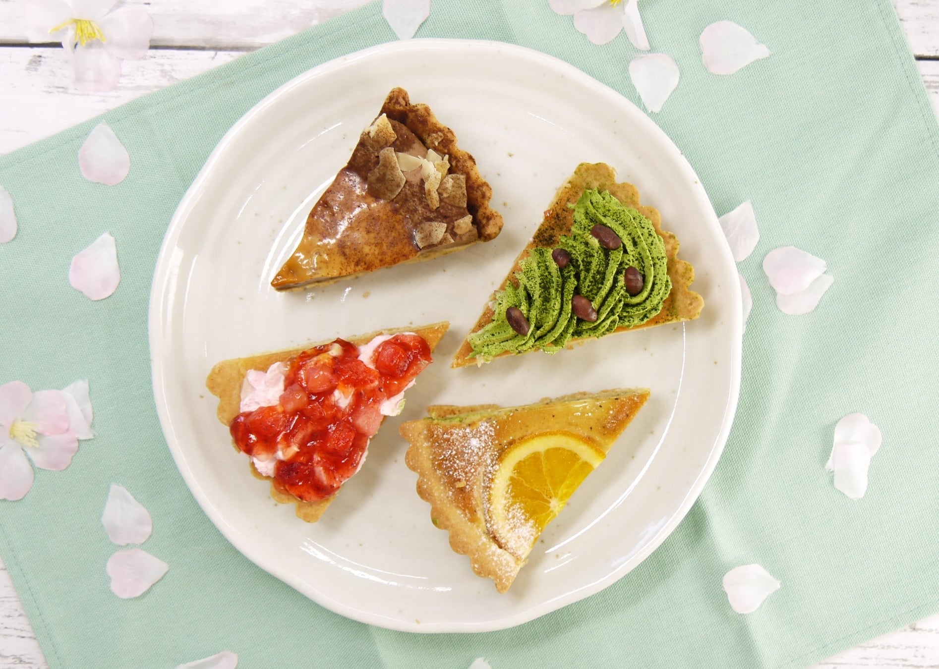 「春満喫タルトアソート」は、「キャラメルカフェモカタルト」「苺タルト」「抹茶と小豆のタルト」「アールグレイ香るオレンジタルト」の4種類のタルトを詰め合わせた。