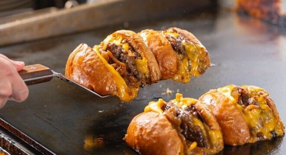『BRISKSTAND』の名物「切ったやつ」は、鉄板でパティを焼く際に流れ出る肉汁を「一滴たりとも無駄にしたくない」というユニークな発想から生まれました。ハンバーガーを半分にカットし、その断面を鉄板で焼き付けることで、バンズに肉汁と旨味を余すことなく吸わせています。