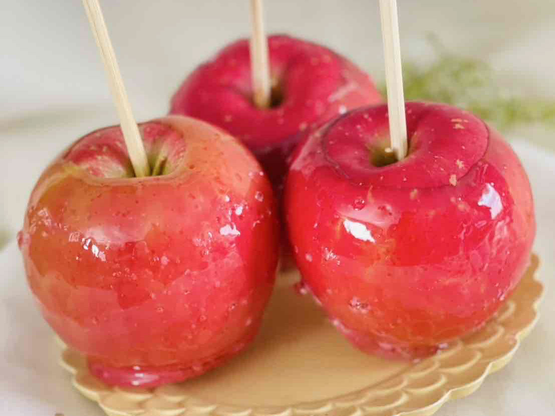 「りんごあめ」はプラス100円で食べやすい大きさにカット可能です。