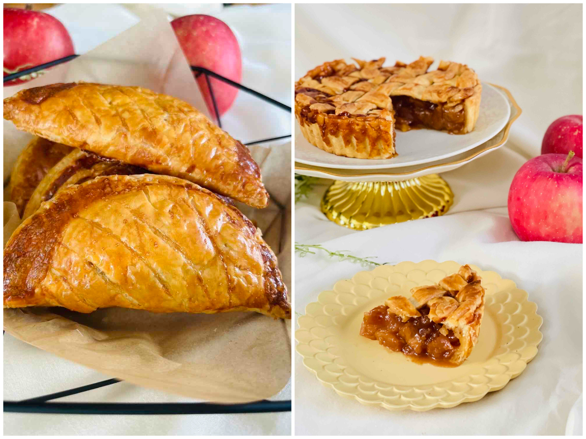 自社農園で収穫後、新鮮なうちに自家製造したリンゴジャムとりんごのコンポートを、バター香るパイ生地で包んだ「アップルパイ」。