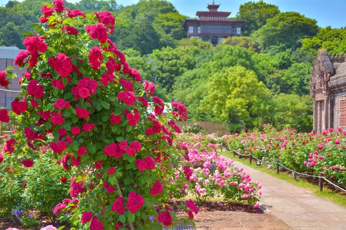 そのほか、不思議の国のアリスをテーマにしたナチュラルガーデン「アリスイングリッシュローズガーデン」、約200品種の新苗や開花苗が購入できる「大バラ即売会」、約1,000㎡の敷地に、世界各国のバラが咲き誇る「レオマローズガーデン」などさまざまなイベントやスポットが盛りだくさんです。