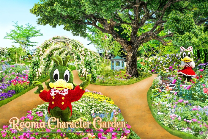 お花やアジアの遺跡が楽しめるオリエンタルトリップエリアに、レオマオリジナルキャラクターをモチーフにした「レオマキャラクターガーデン」が誕生!ペディー&ポーリーのトピアリーがみなさまをお出迎えいたします。