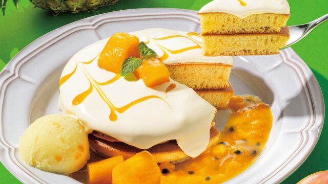 珈琲館:特製クリームあふれる”とろじゅわ”食感「トロピカルミックスホットケー...2026.04.20カフェクリームチーズケーキコーヒータルト・パイチーズテイクアウトパイナップルホットケーキマンゴー数量限定期間限定桃