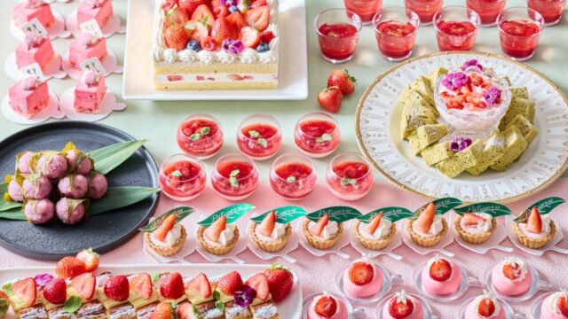 伊藤久右衛門茶房、「いちご抹茶パフェ」と「源氏物語 いちご抹茶スイーツプレー...