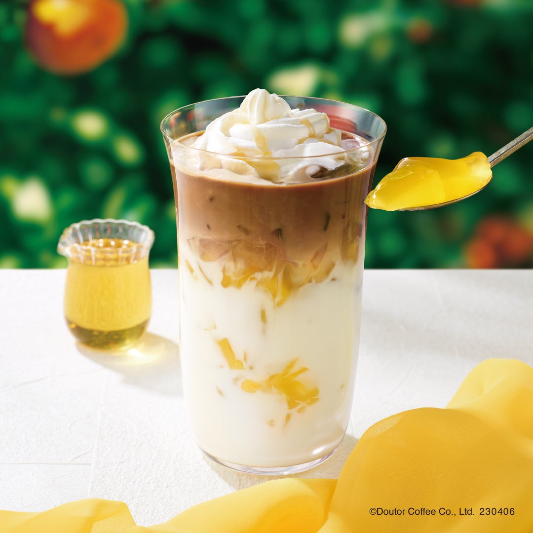 「ゼリーinみかんハニーラテ」はアイスの「みかんハニーラテ」に、愛媛県産みかん果汁を使ったゼリーを加えたデザートドリンク。ゼリーのプルプル食感に注目だ。